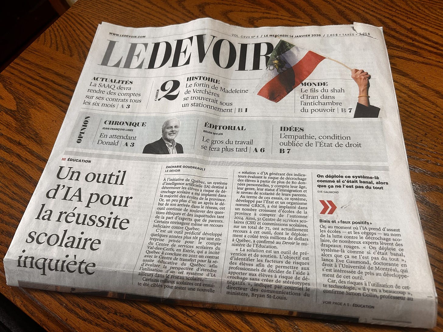 Cela témoigne de l’importance du journal Le Devoir dans l’écosystème médiatique québécois. Un journal qui croit assez en l’éducation pour embaucher un (excellent) journaliste—Zacharie Goudreault—qui fait avancer le débat public en menant des enquêtes sur ce qui se passe en éducation, et qui croit assez à l’éducation pour mettre ses articles en une.